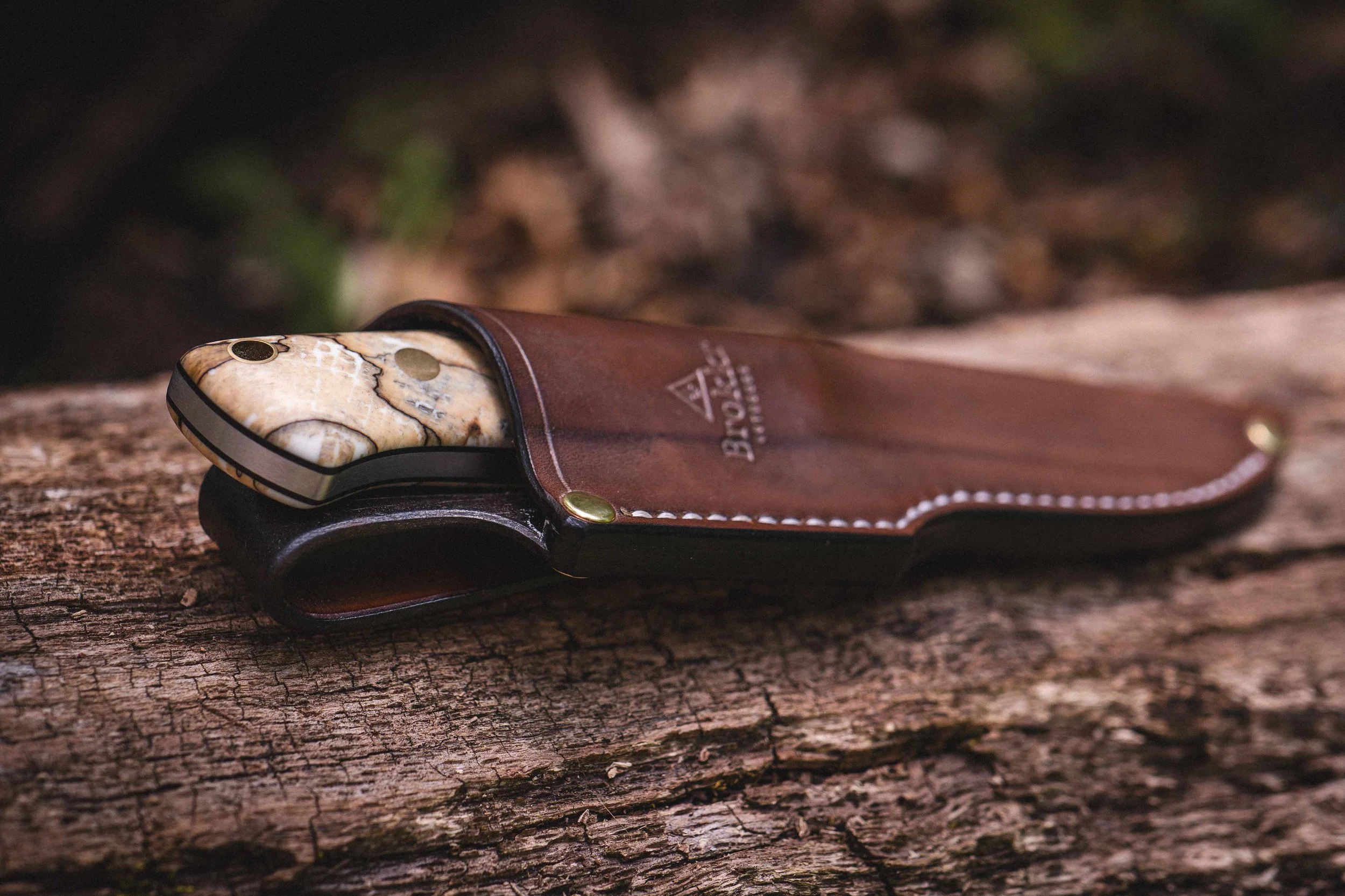 The Woodsman Lt is a rugged, mid-sized fixed-blade knife designed for serious field use while remaining light enough to not add too much weight to your loadout. With a 4-inch blade and an overall length of 8½ inches, the knife weighs roughly 10 ounces including its leather sheath. The spine is sharp for fire steel striking.