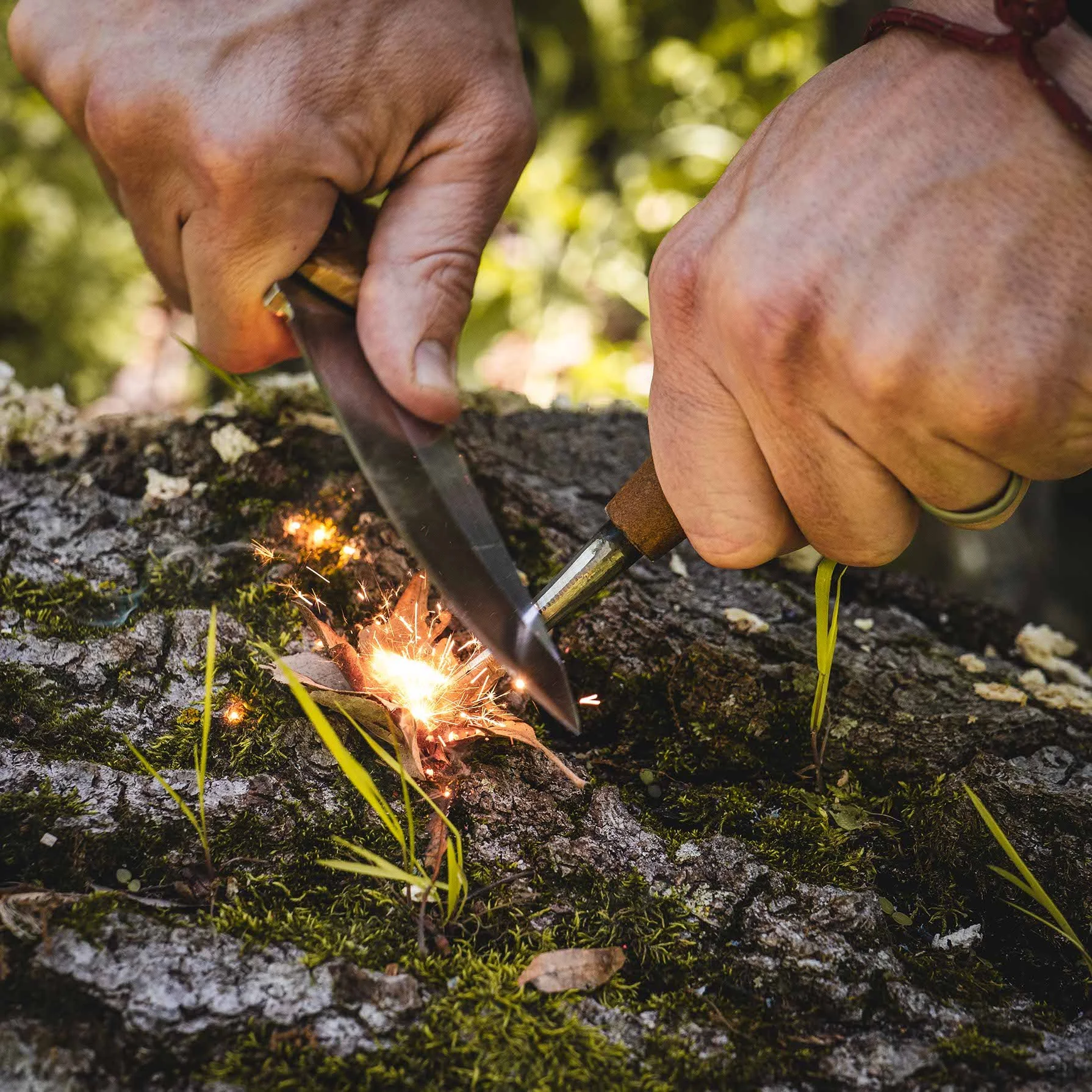 We chose steels specifically for their exceptional toughness and edge retention—materials that resist chipping even during heavy batoning, and hold an edge far longer than ordinary blades. The spine is sharp for fire steel striking. The result is a tool that is reliable through extended use, giving you complete confidence no matter how tough the task or how remote the country.